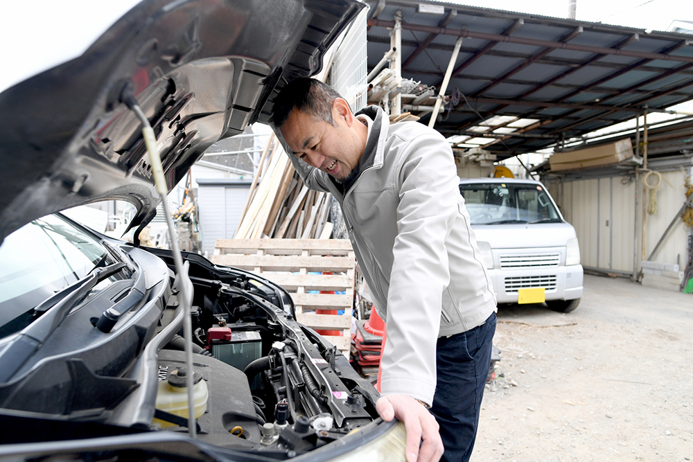 車に配送物の積み込みを行い、さぁ出発!安全運転で参ります。